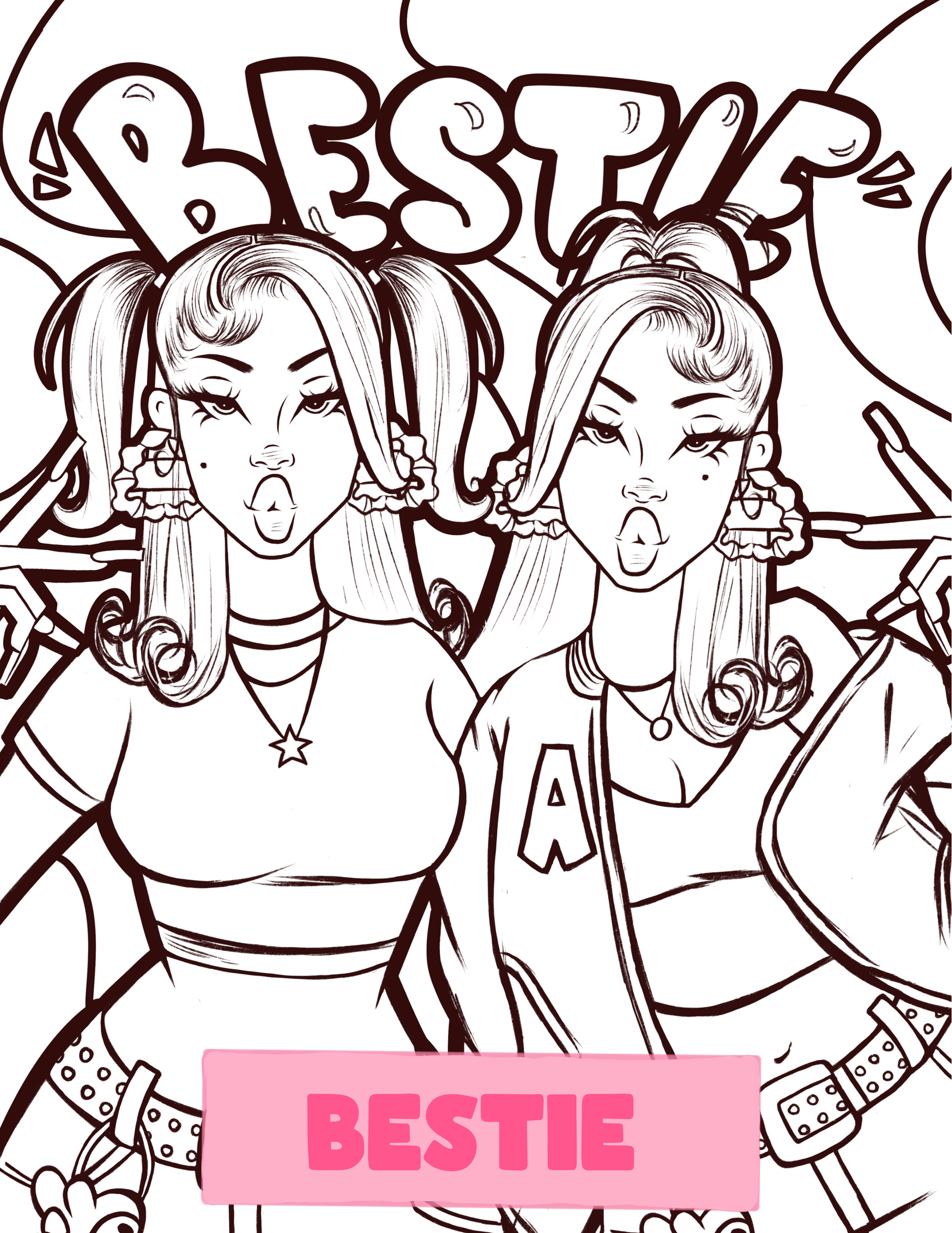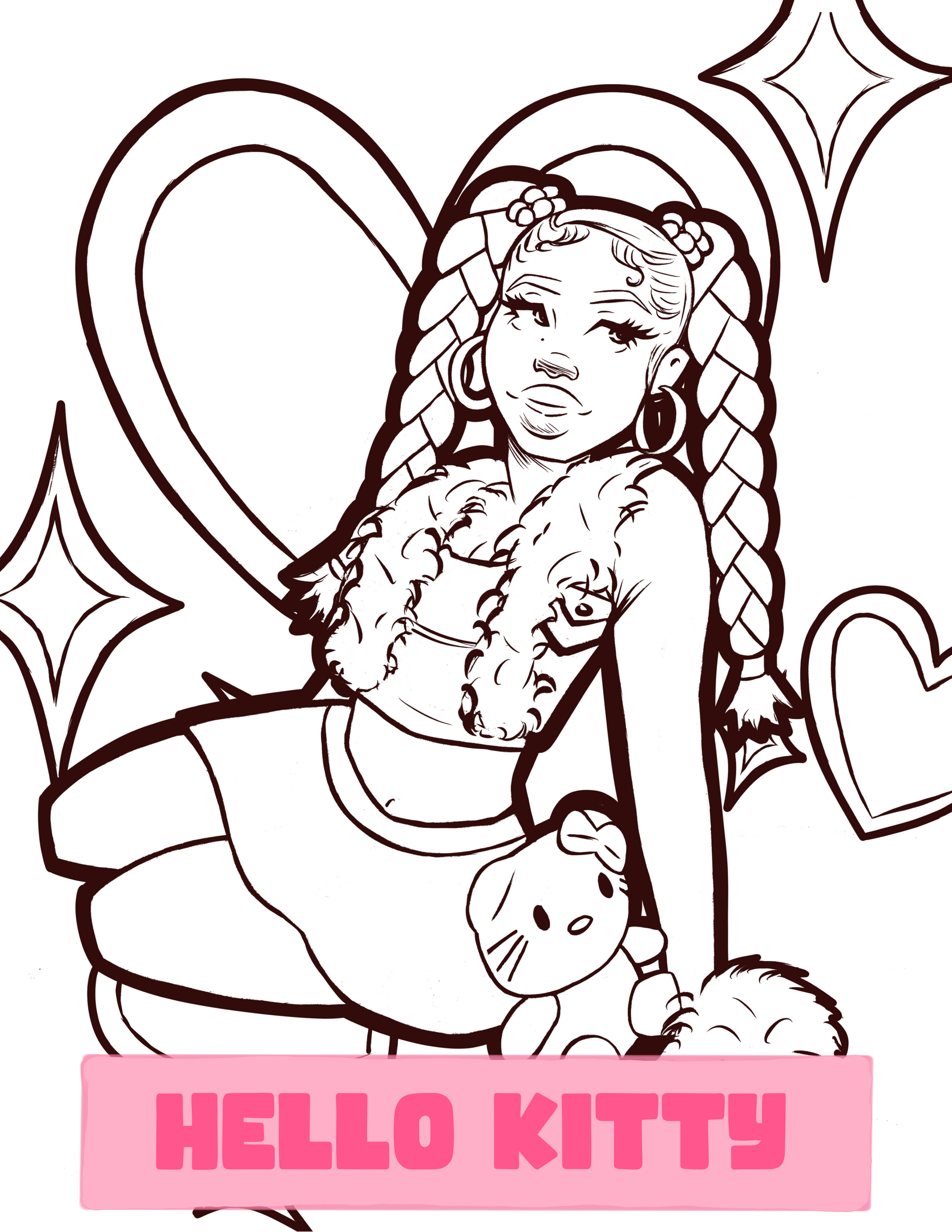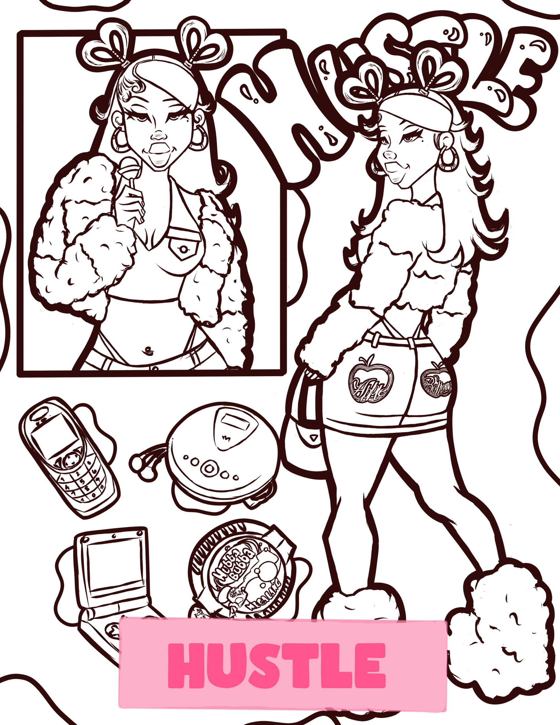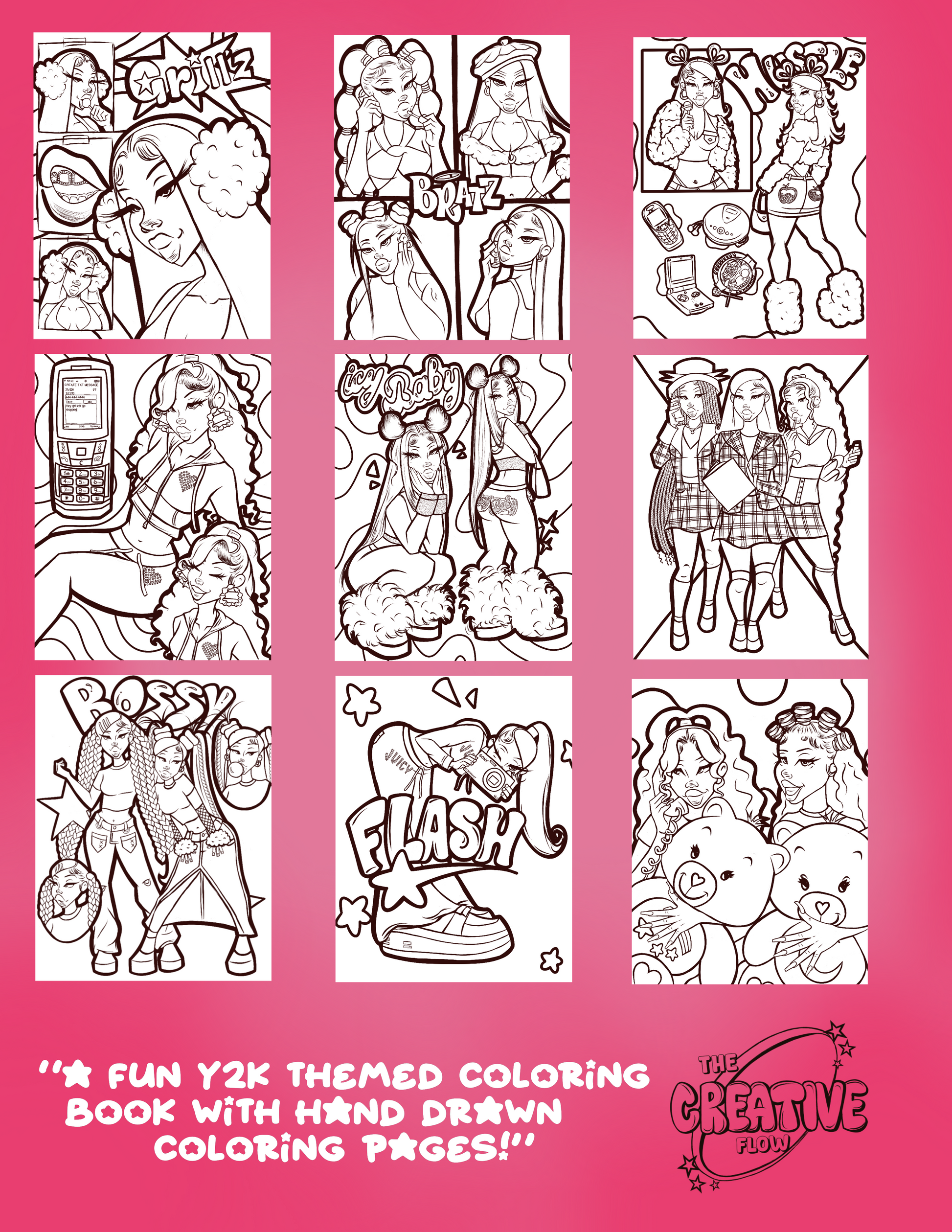 Create a fun Y2K themed coloring book with 25 digitally drawn coloring pages!